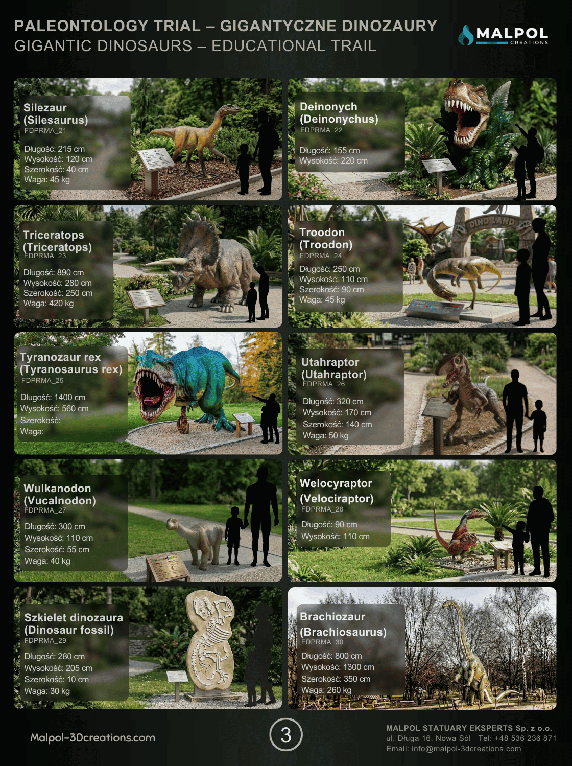 Katalog dinozaurów XXL (Dinosaur Catalog) – precyzyjne makiety 3D i repliki paleontologiczne – Producent Malpol Poland.